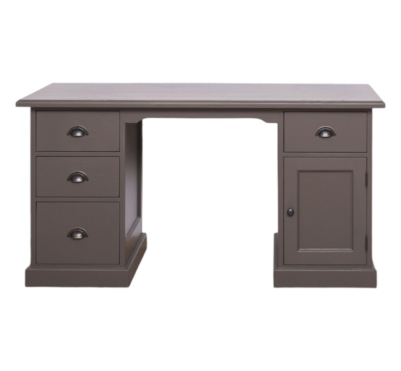 Dit bureau is voorzien van drie lades in verschillende formaten aan de linkerzijde en een extra lade aan de rechterzijde, gecombineerd met een afsluitbare kast voor computer of opbergruimte. Het landelijke ontwerp met zijn klassieke uitstraling maakt dit bureau niet alleen praktisch, maar ook een stijlvolle toevoeging aan uw interieur.