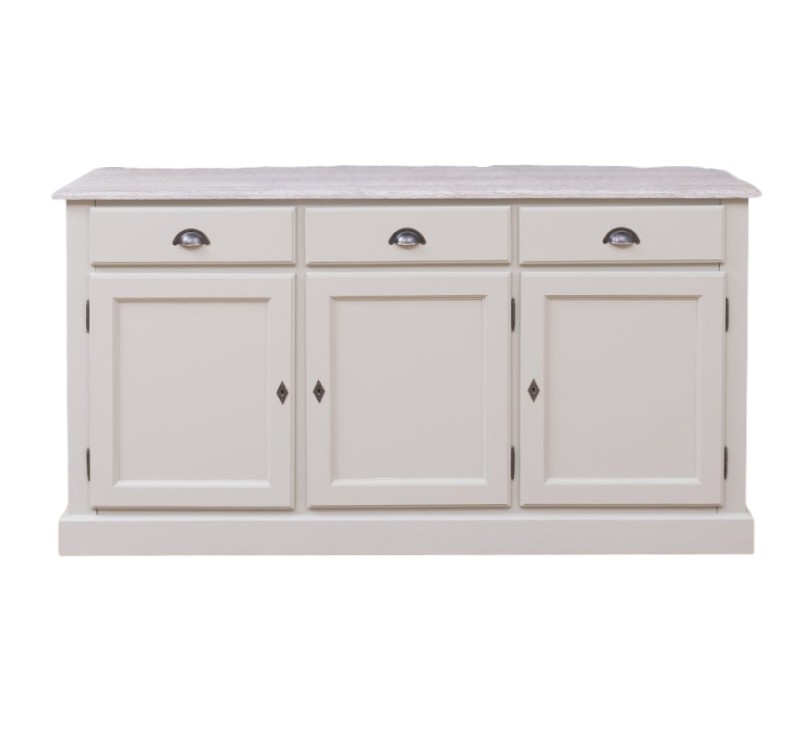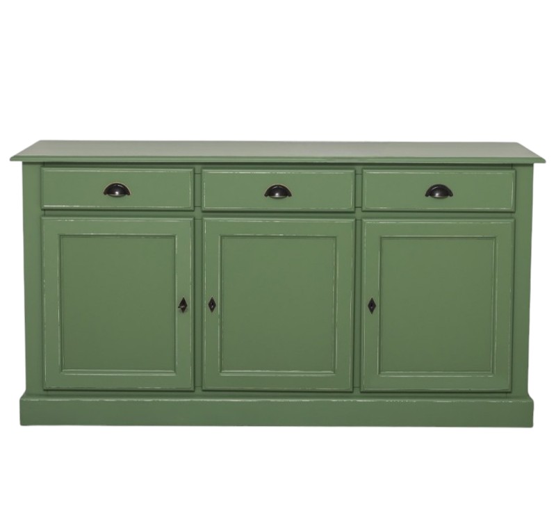 Het tijdloze en elegante ontwerp maakt dit dressoir geschikt voor uiteenlopende interieurs, van klassiek tot modern. De drie kastdeuren en ruime lades zorgen voor maximale opbergruimte, terwijl de verfijnde afwerking een luxe uitstraling geeft.