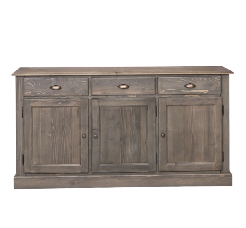 Introduceer elegantie en functionaliteit in je interieur met ons prachtige dressoir met drie lades en drie kastjes. Dit stijlvolle meubelstuk is ontworpen met oog voor detail en vervaardigd om te voldoen aan de hoogste kwaliteitsnormen. Dit product is gemaakt van 100% massief hout en komt volledig gemonteerd.
