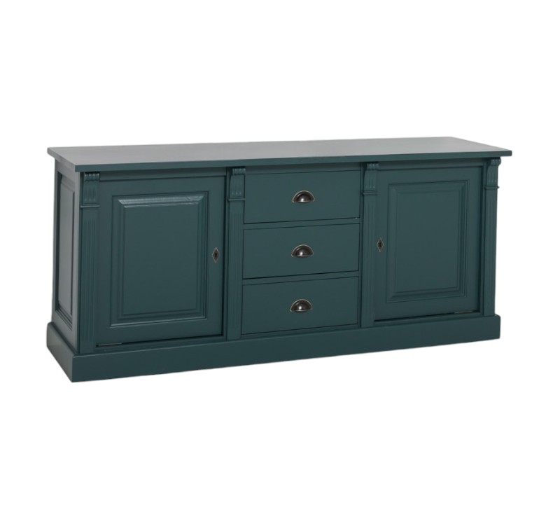 Deze modern houten dressoir met zijn afmetingen 179 m x 51 cm x 78 cm. met lades en 2 deurtjes combineert klassieke elegantie met praktische opbergruimte. Door de praktische indeling en opbergruimtes voegt dit houten dressoir karakter toe aan uw woonruimte. Dankzij de keuze uit 50 kleuren en diverse afwerkingen past dit dressoir moeiteloos bij elk interieur, van klassiek tot modern.