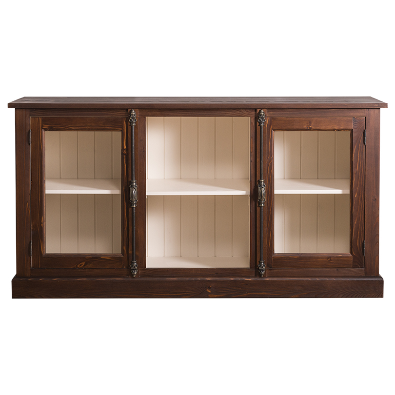 Met dit meubelstuk kunt u optimaal gebruik maken van de ruimte in uw keuken of woonkamer, en tegelijkertijd heeft u veel opbergruimte achter vier glazen deuren, evenals de open centrale ruimte. Het product is uitgerust met rustiek cremone-beslag dat elegantie toevoegt aan het product! Dit product is gemaakt van 100% massief hout en komt volledig gemonteerd.