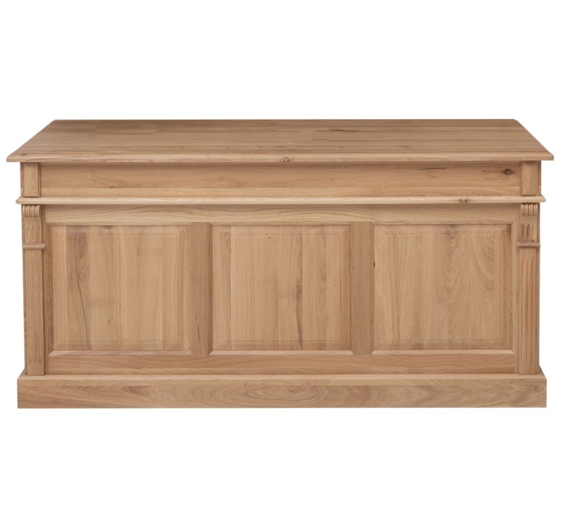 Met zijn royale afmetingen van 160 × 70 × 78 cm of maatwerk is dit Engelse directeur bureau een statige en functionele toevoeging aan elke werkkamer of kantoorruimte. Gemaakt van 100% massief eikenhout, straalt dit bureau klasse, duurzaamheid en vakmanschap uit. Het gesloten ontwerp aan de achterzijde geeft het meubel een robuust en verfijnd karakter, ideaal voor representatieve werkplekken.