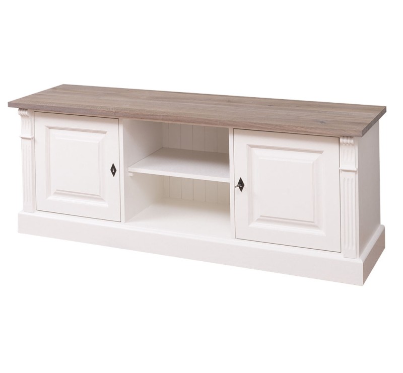 Het ontwerp modern met landelijke look en klassieke ornamenten geeft dit tv meubel een tijdloze uitstraling en maakt het een echte eyecatcher in de woonkamer, werkkamer of slaapkamer. Het samenspel van open en gesloten elementen zorgt voor zowel een decoratief als functioneel meubelstuk dat in elke woonstijl tot zijn recht komt.