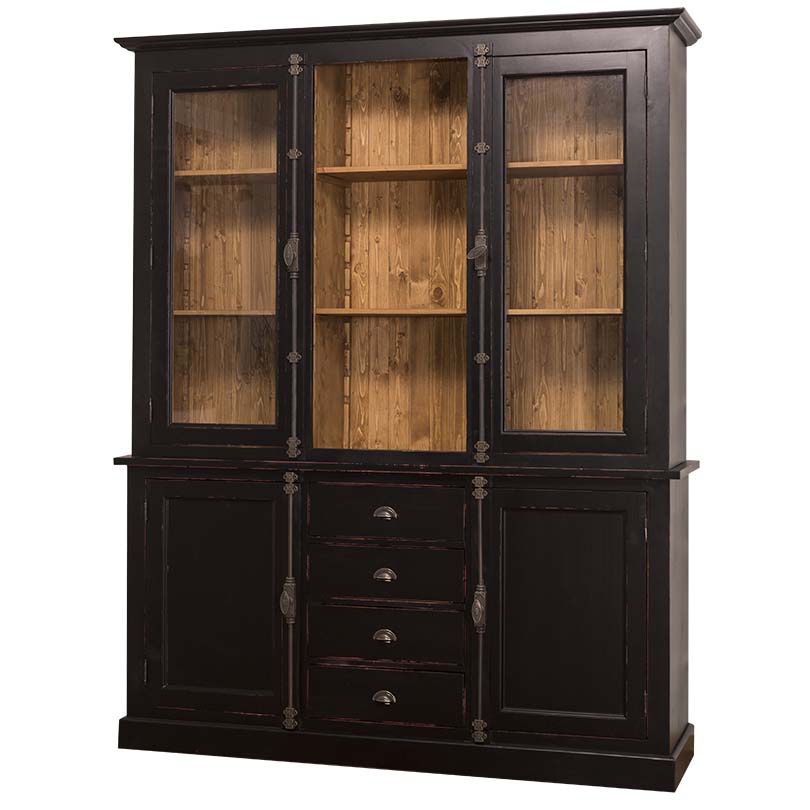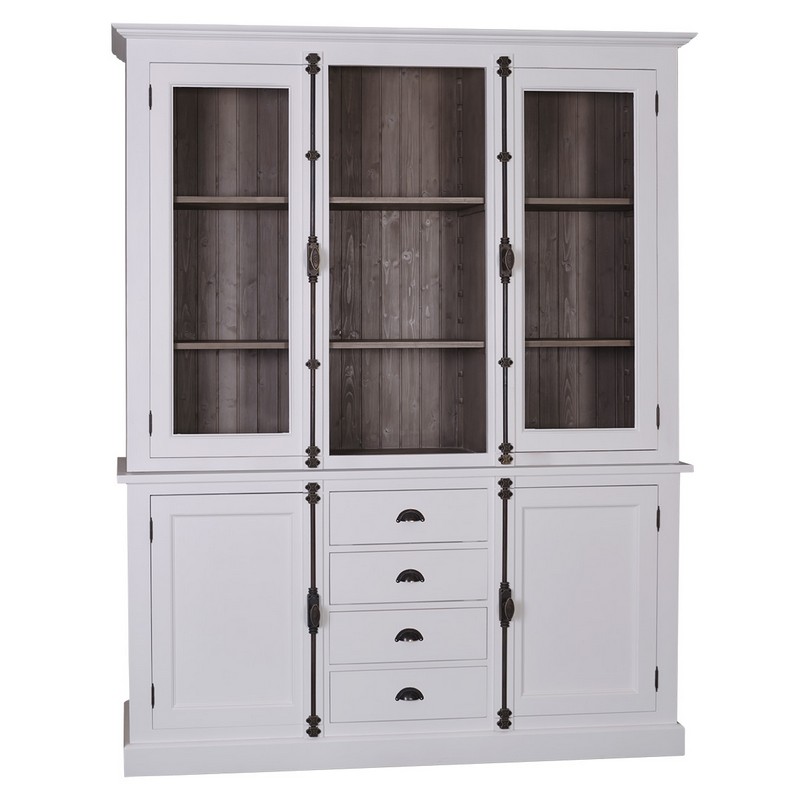 De zeer stevige constructie maakt langdurig gebruik mogelijk. Het product biedt veel presentatieruimte in het bovenste gedeelte met 2 planken met royale oppervlakken op de twee delen van het bovenste gedeelte, die elke 7 cm verstelbaar zijn, wat het een speciale modulariteit geeft, en in het onderste gedeelte heeft het twee praktische opbergruimtes achter twee deuren en vier lades. Het product is uitgerust met rustiek Cremone-beslag dat elegantie toevoegt aan de kast! Dit product, gemaakt van 100% massief hout, komt volledig gemonteerd en biedt veel presentatieruimte.